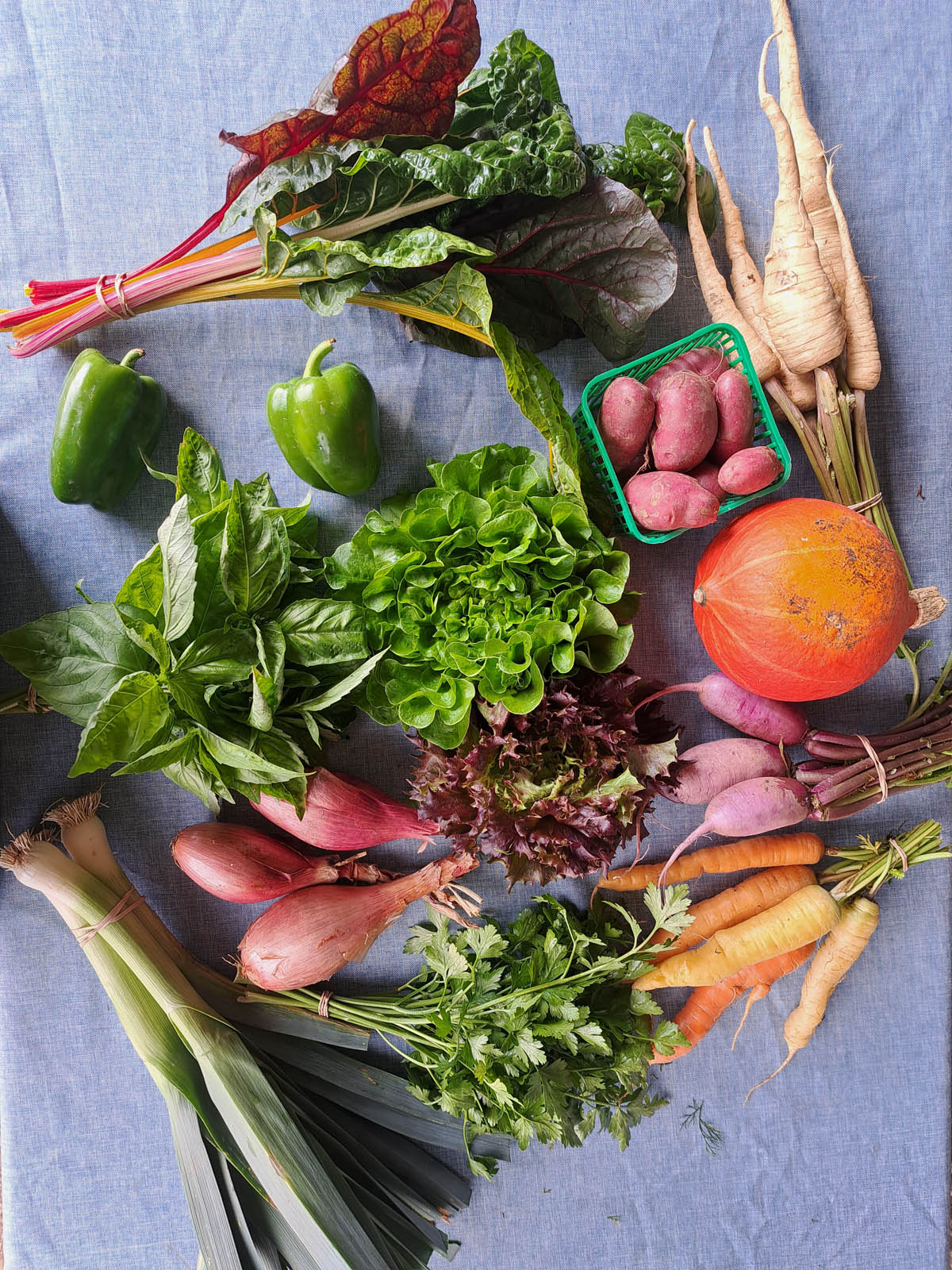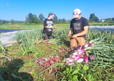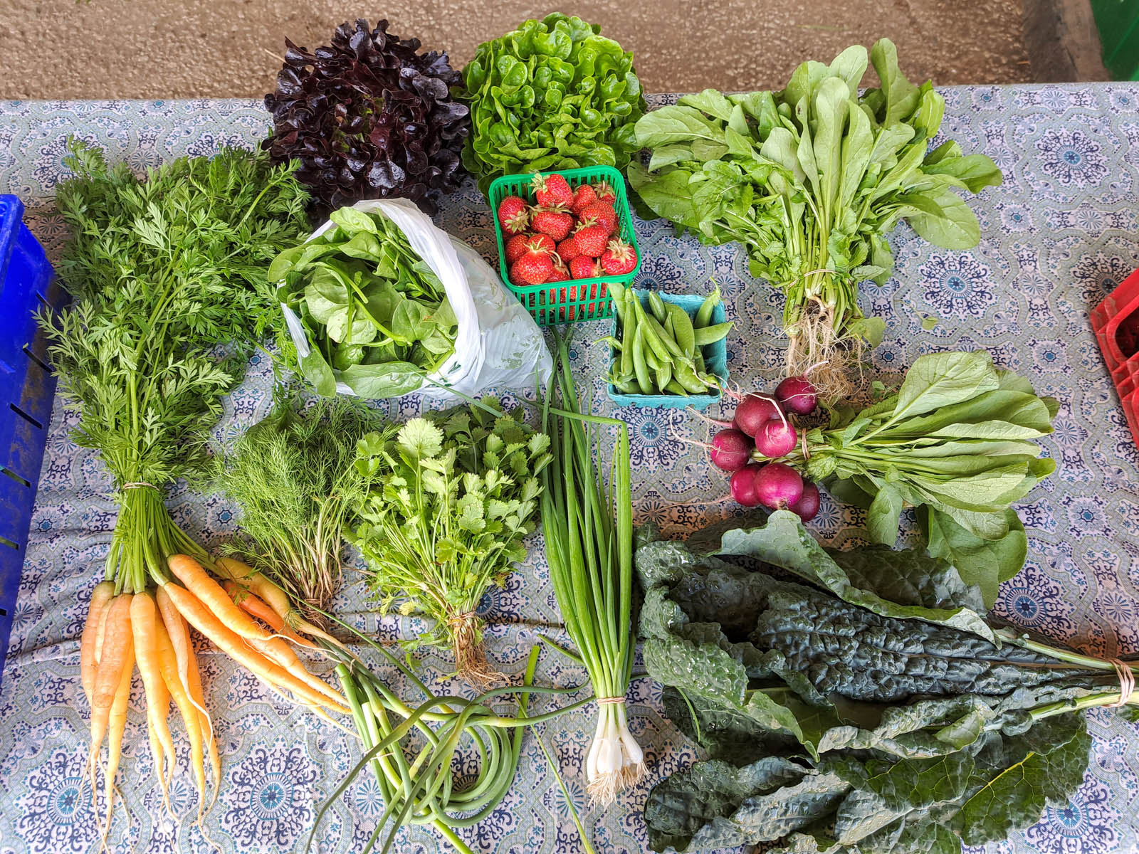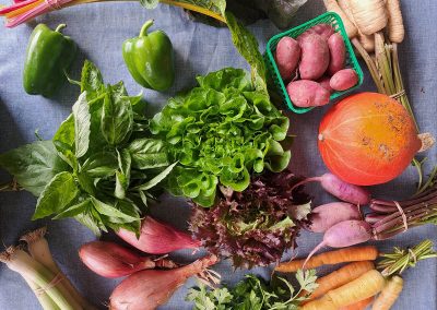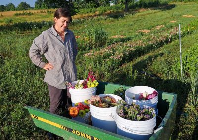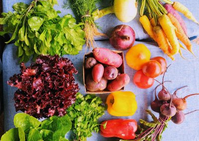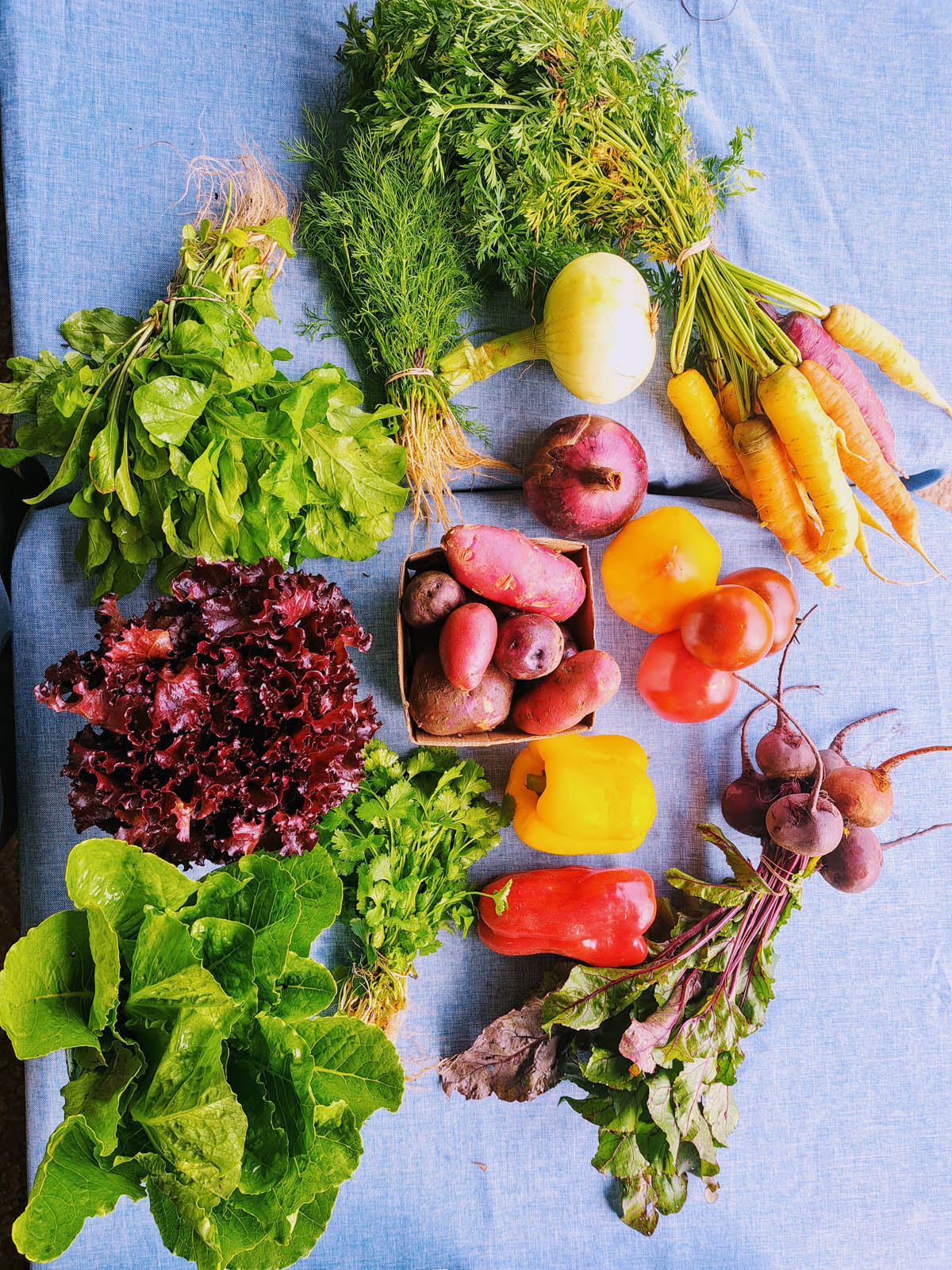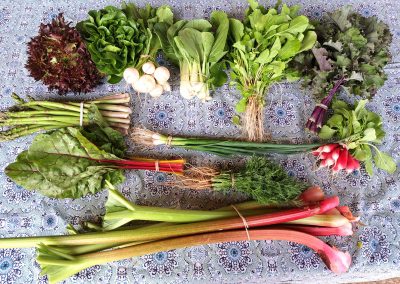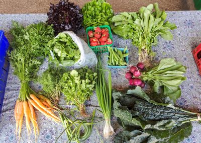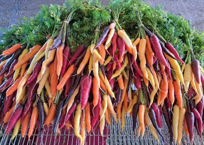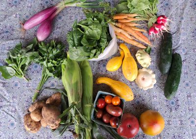 We sell our vegetables through Farmers Markets and through our C.S.A( Community supported agriculture) vegetable basket.